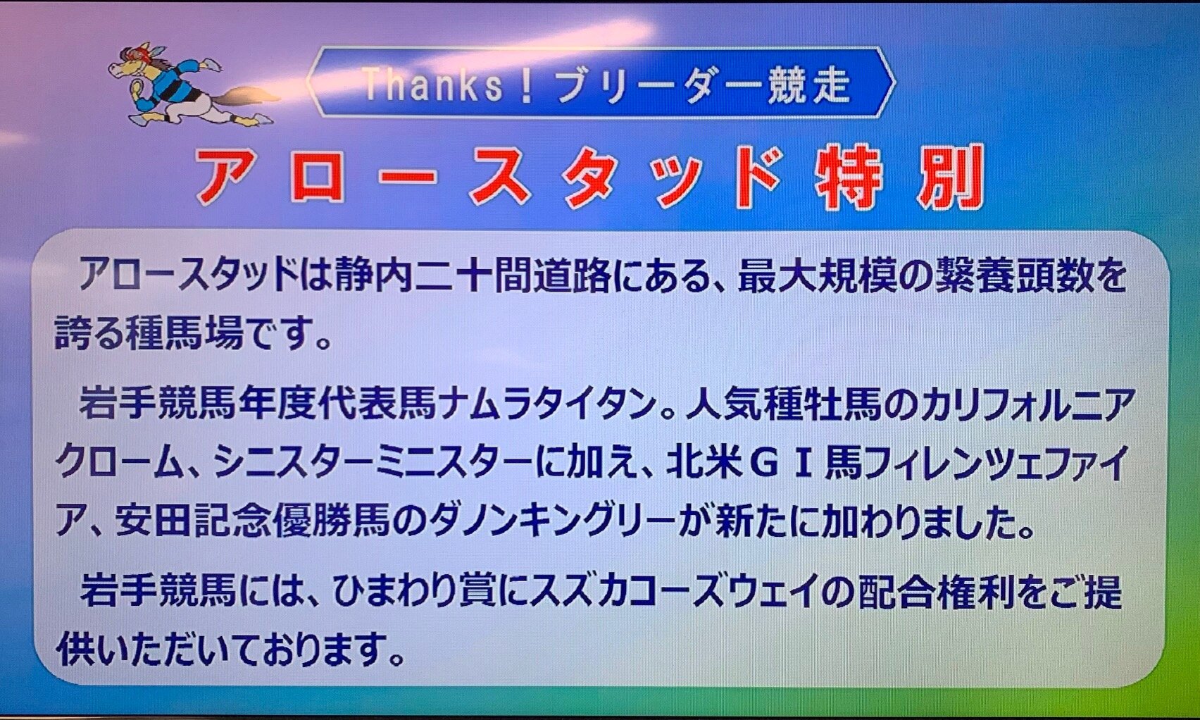 ファンの皆様、岩手競馬「Thanks!ブリーダー競走」への御声援ありがとうございました🐎