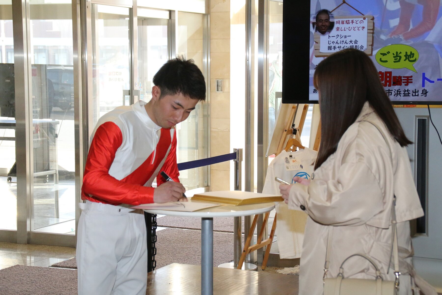 翌日に控えたGⅠ・大阪杯の予想コーナーでは、プロ予想家顔負けの見解を披露したほか、じゃんけん大会やサイン・写真撮影会では、ファンの方々との束の間のふれあいの時間が流れました。