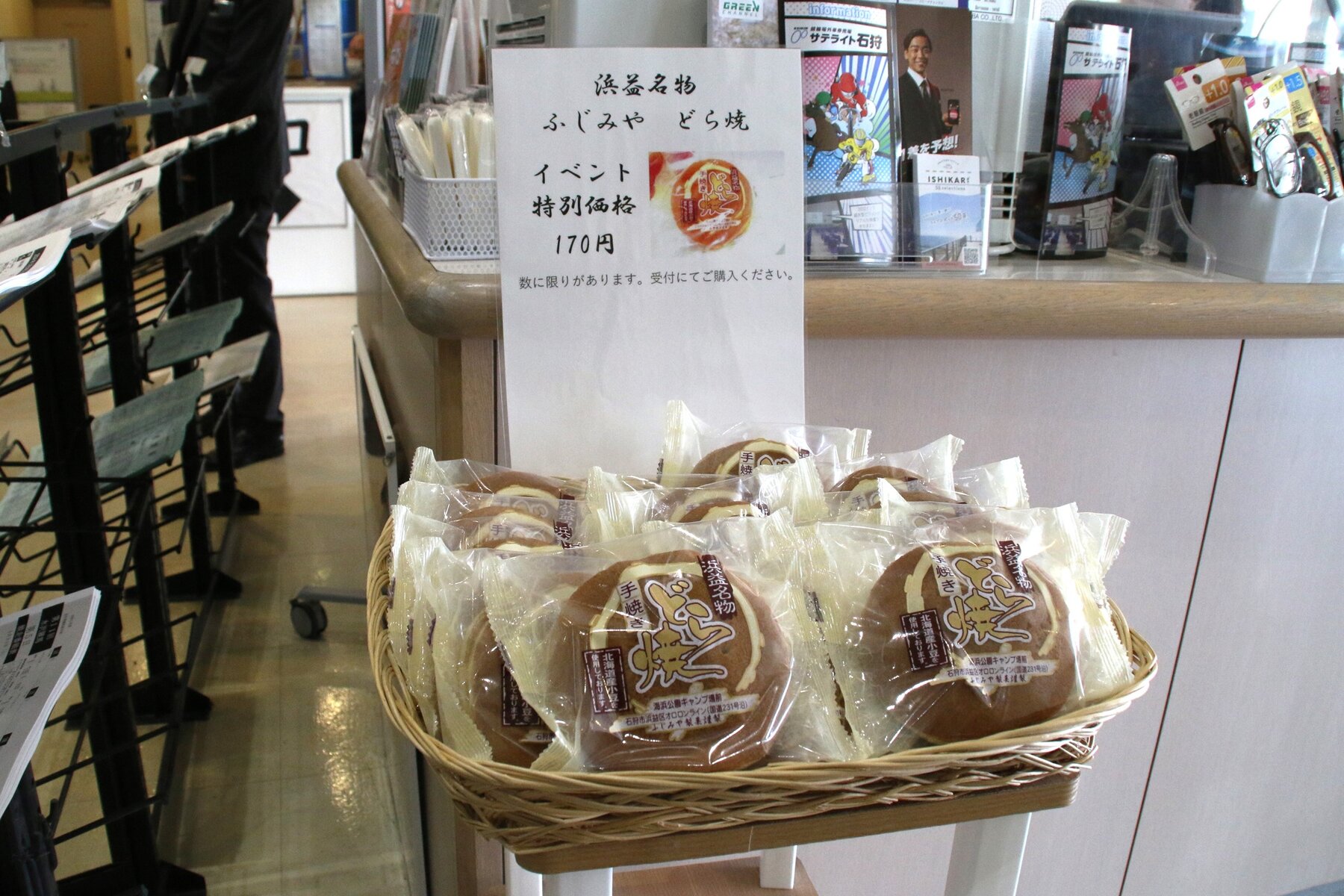 会場の横に浜益地区のPRブースも設置されたり、浜益名物「ふじみや」さんのどら焼きが販売されたりしていました。