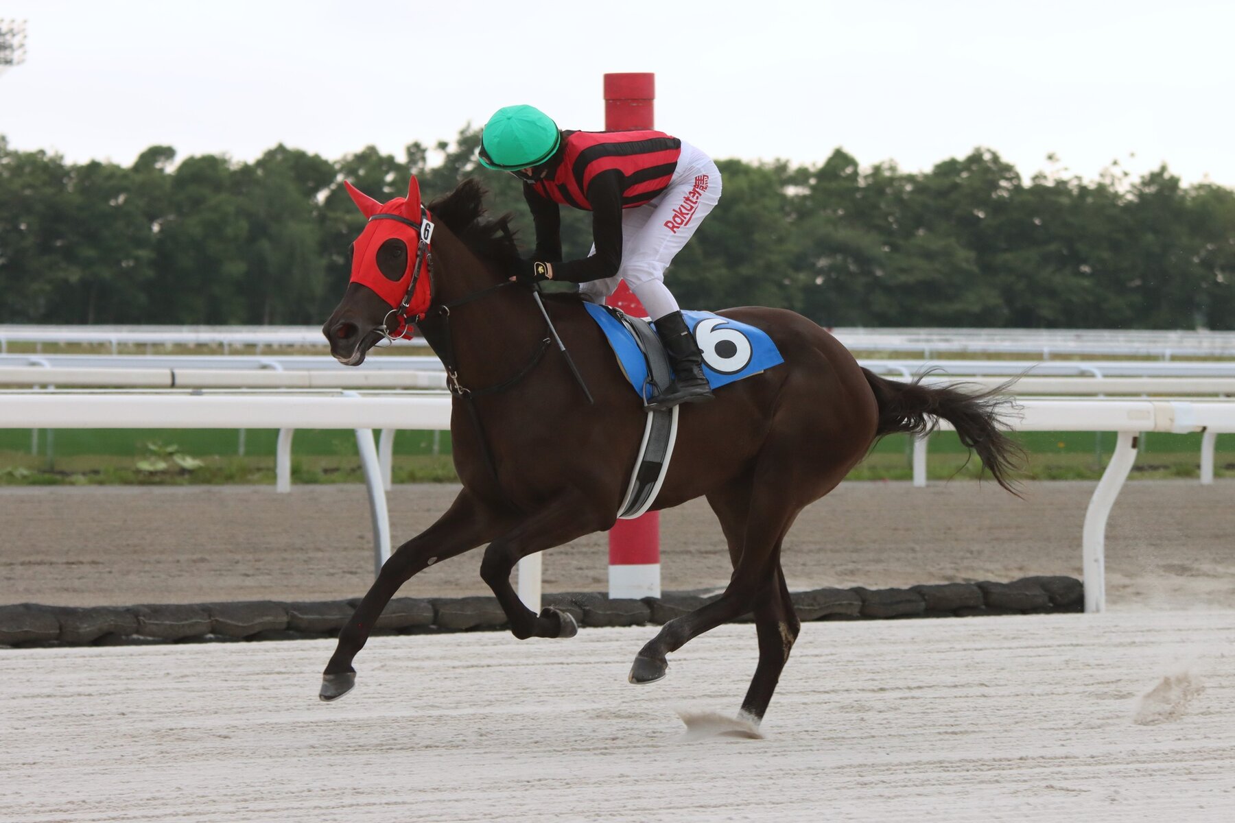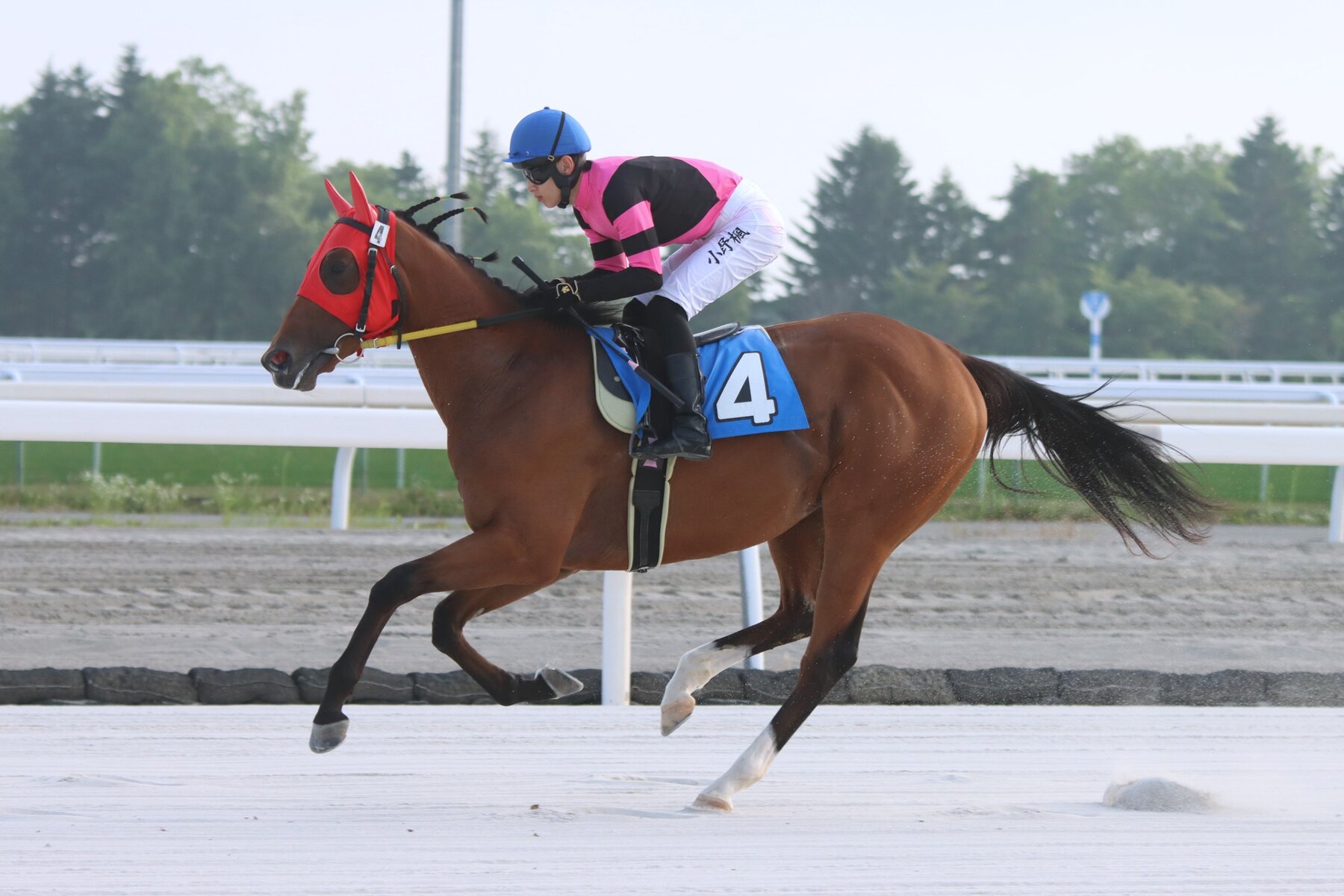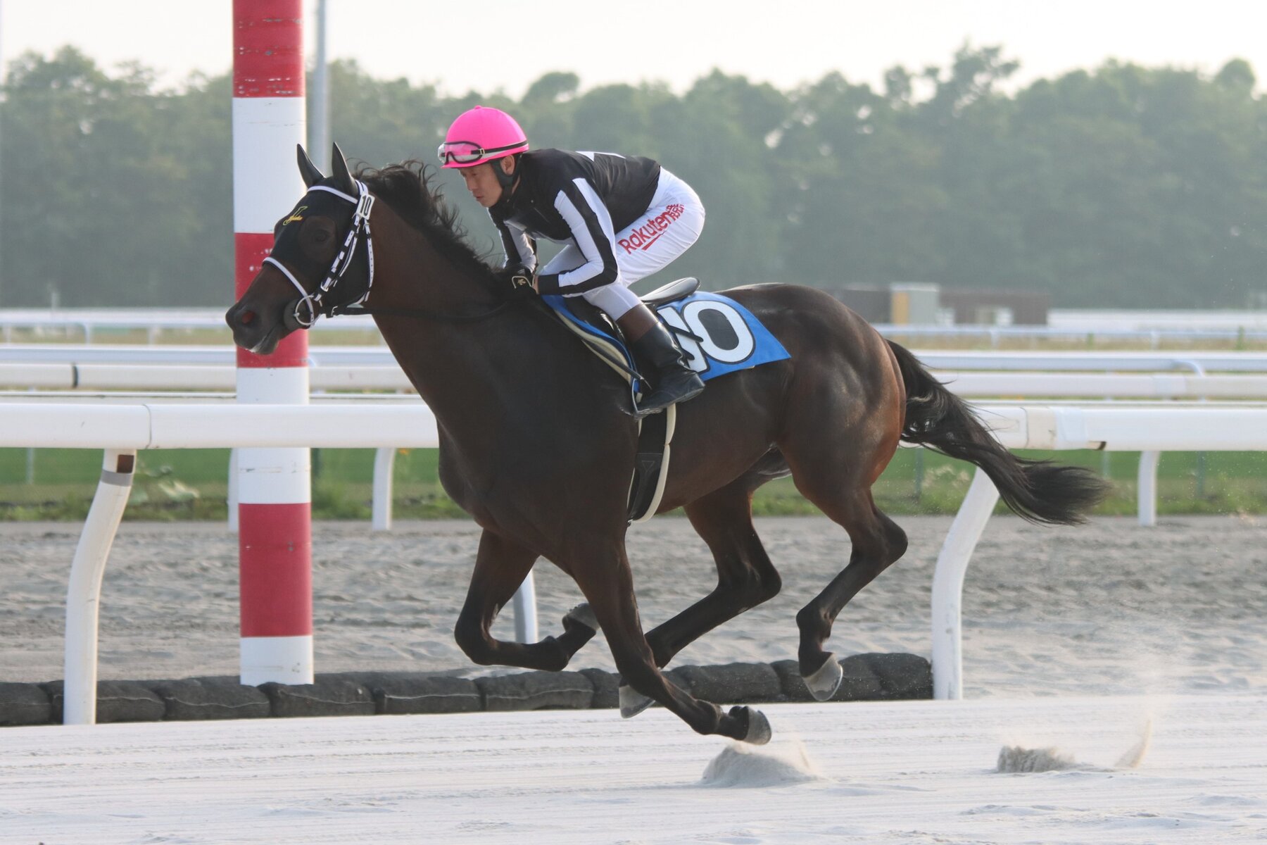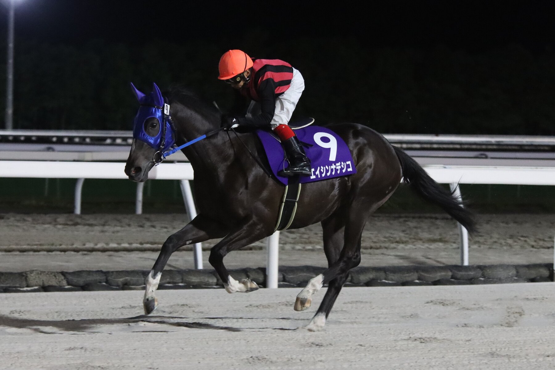8枠⑨番 エイシンナデシコ(牝2=村上正和厩舎、父タリスマニック、山田昇史さん=浦河町生産)55.0kg永野猛蔵騎手[JRA]