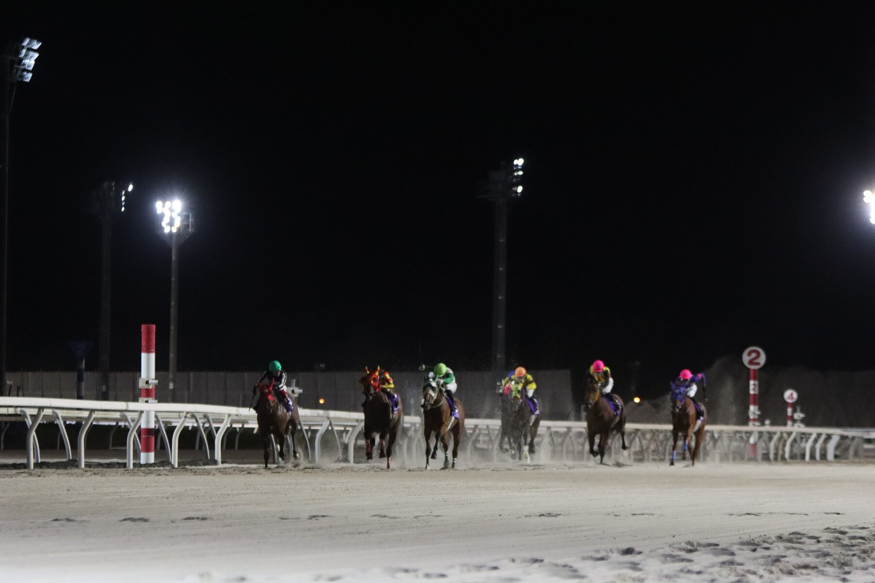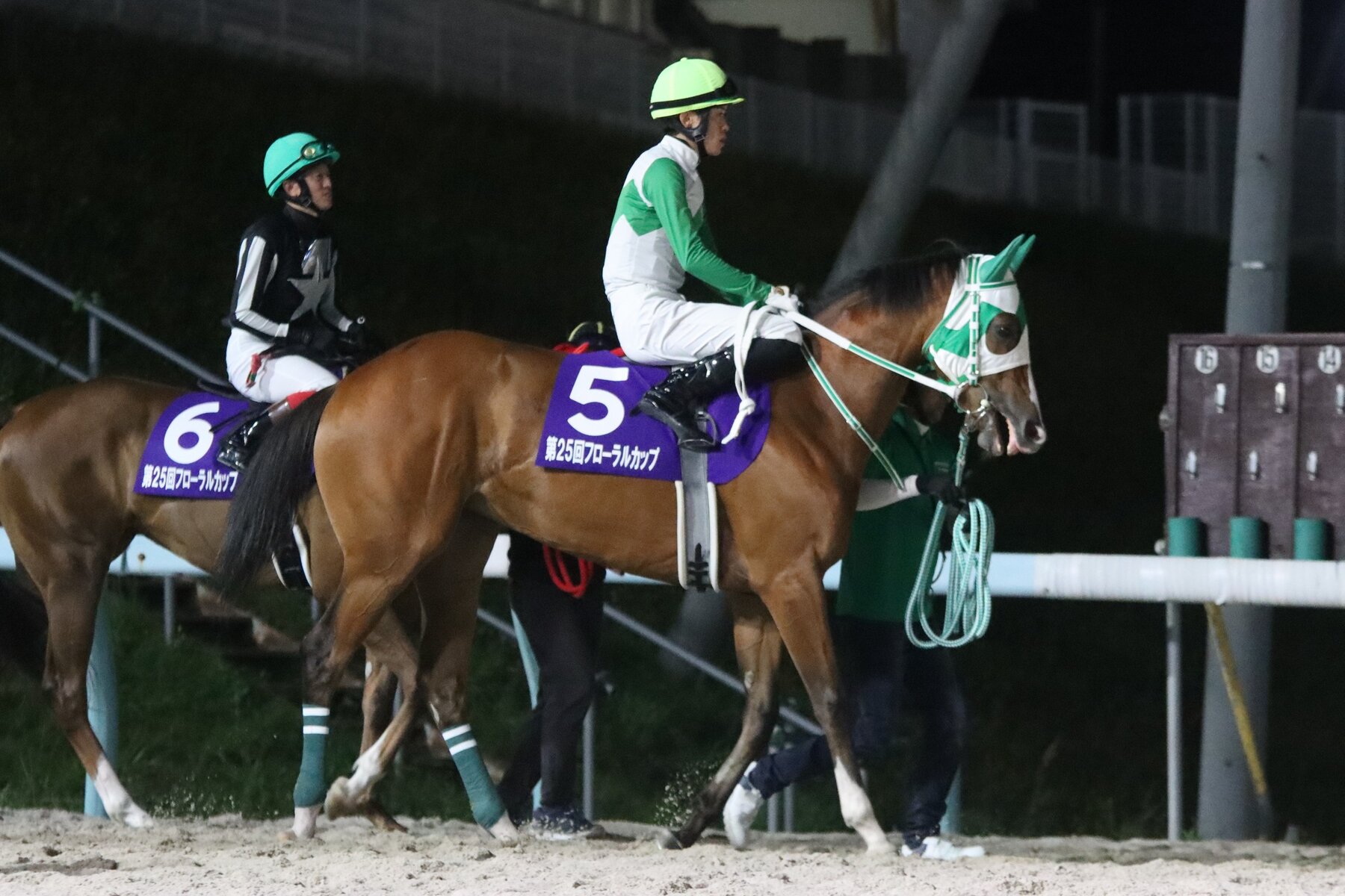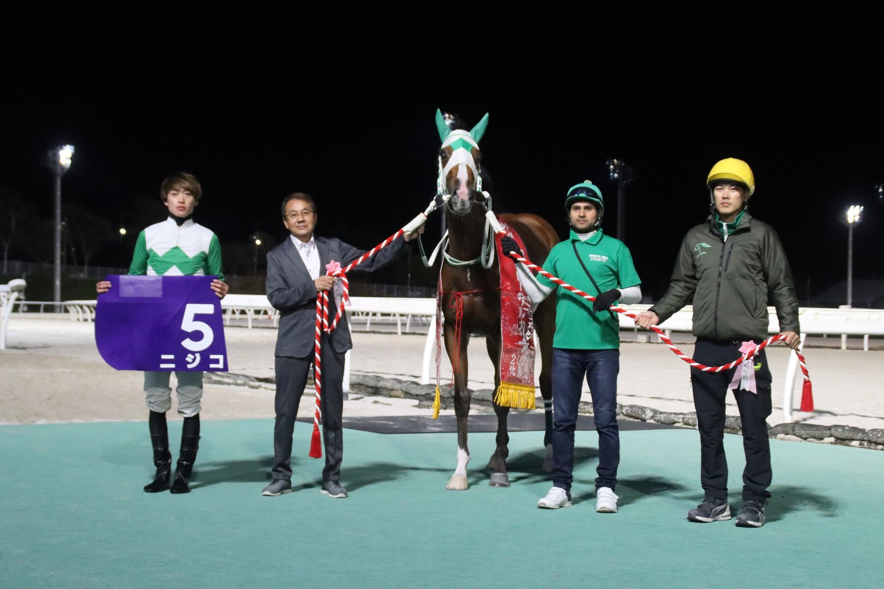 18日(木)門別12R・JRA認定競走UHB杯第25回フローラルカップ〔H3〕(ダノンプレミアム賞)(2歳牝馬オープン、ダ・内1,600m)は、後方待機策をとった⑤ニジコ(牝2=米川昇厩舎、父レインボーライン、新冠伊藤牧場=新冠町生産)がゴール前で差し切り。